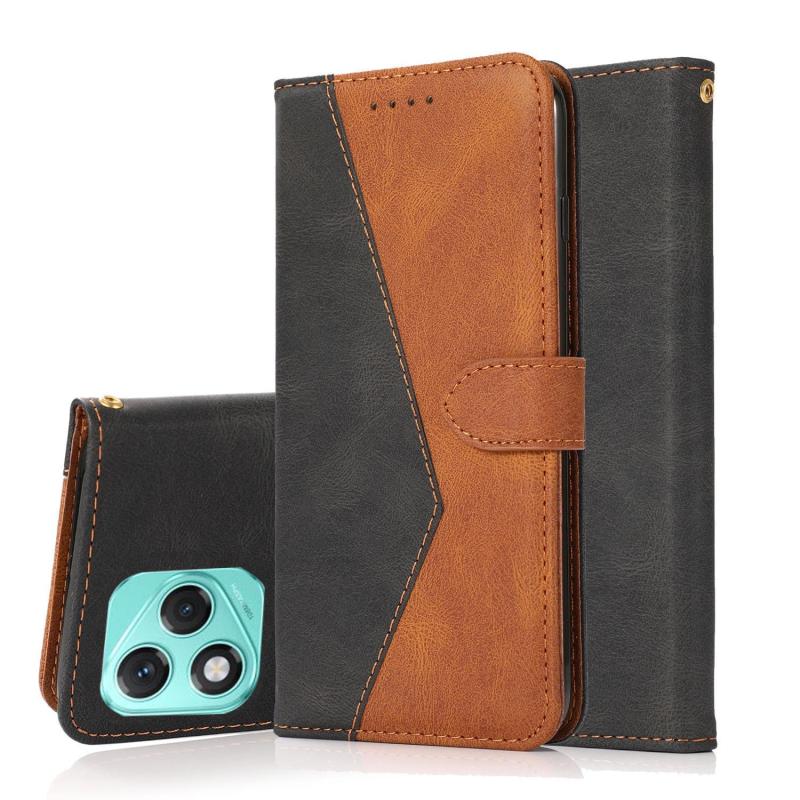 For Honor 400 Lite Global Dual-color Stitching Leather Phone Case(Black Brown)