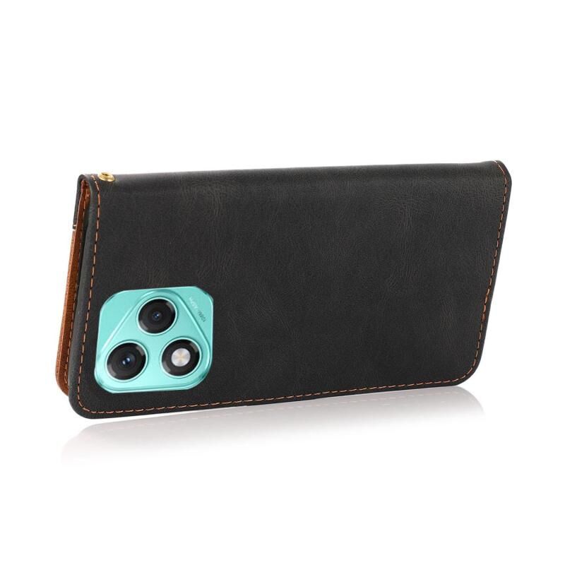 Θήκη τηλεφώνου δερμάτινη διχρωμίας ραφής για Honor 400 Lite Global (Μπλε Πράσινο)