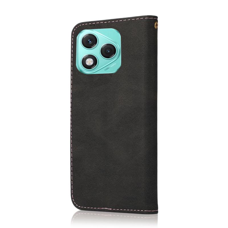 For Honor 400 Lite Global Dual-color Stitching Leather Phone Case(Black Rose Gold)