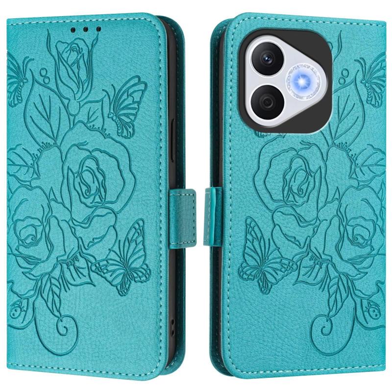 For Honor 400 Lite Global Embossed Rose RFID Anti-theft Leather Phone Case(Light Blue)