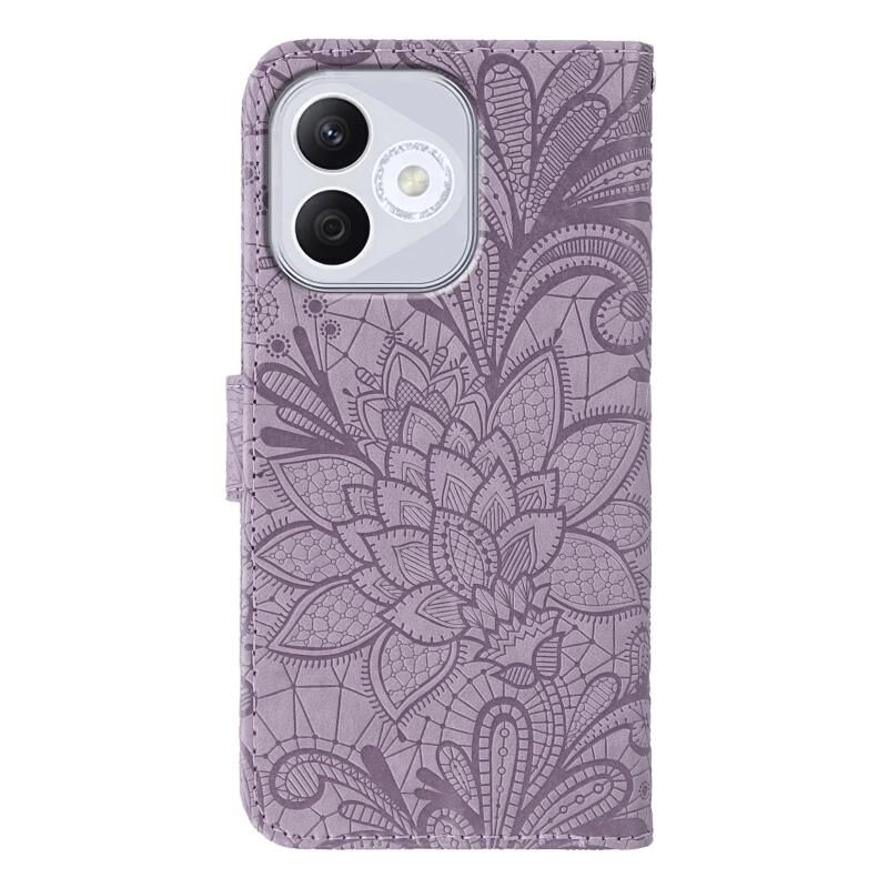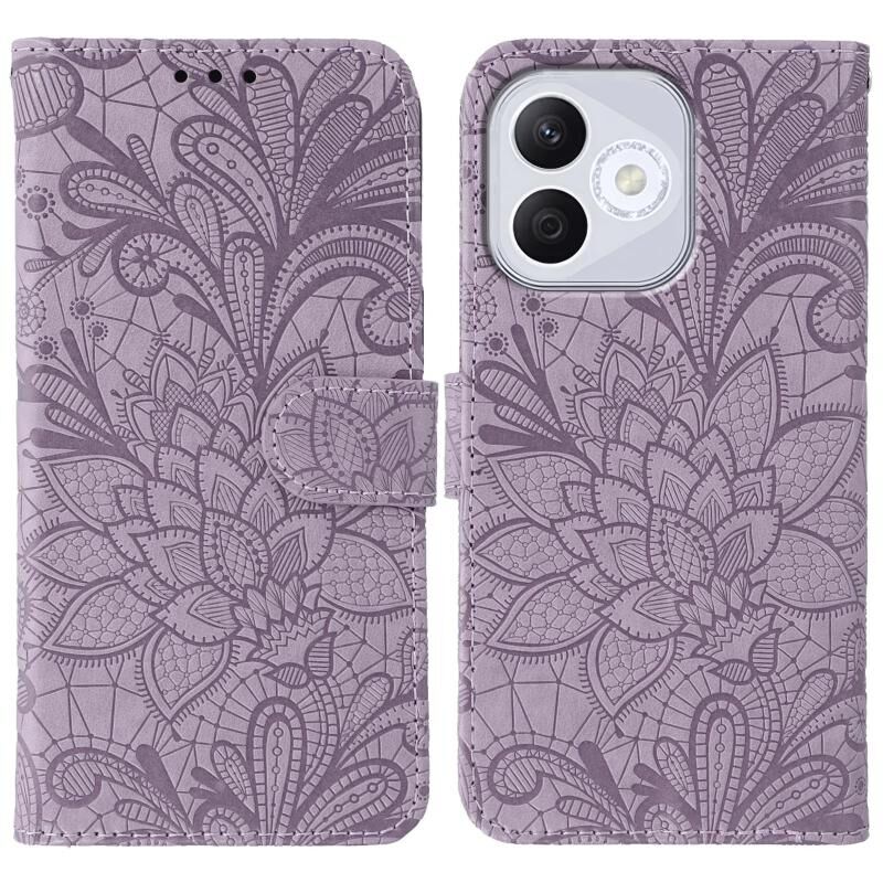 For Honor 400 Lite Global Lace Flower Embossing Flip Leather Phone Case(Purple)