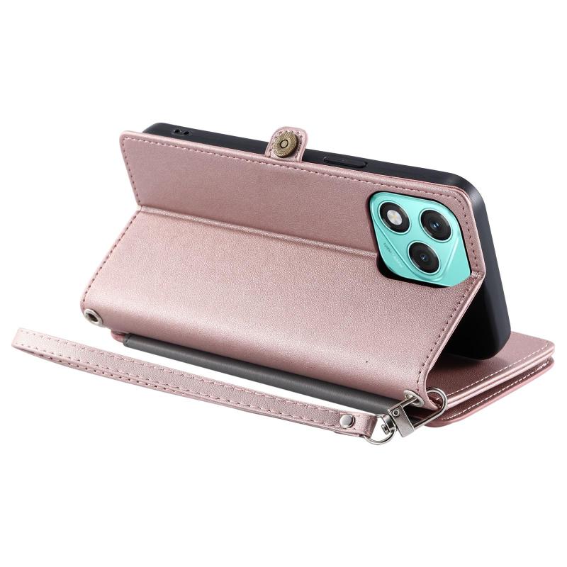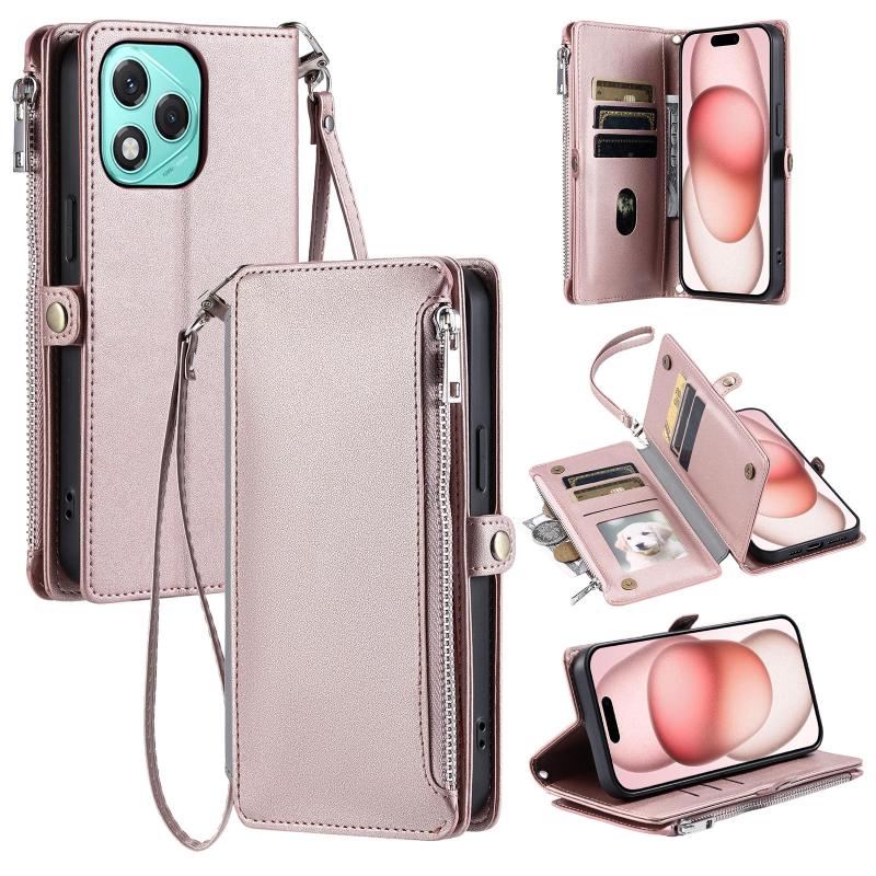Θήκη τηλεφώνου Honor 400 Lite Global από δέρμα με ραφές, πολλαπλές θήκες για κάρτες και φερμουάρ (Μαύρο)