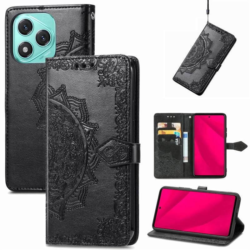 For Honor 400 Lite Global Mandala Flower Embossed Leather Phone Case(Black)