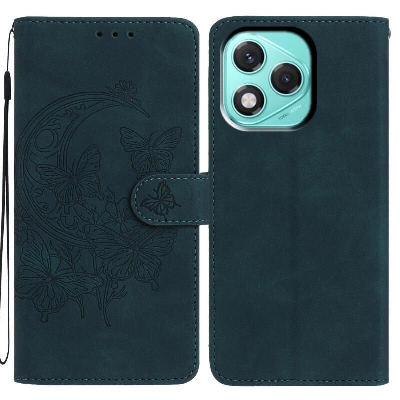 Θήκη τηλεφώνου από δέρμα με ανάγλυφο σχέδιο χορού πεταλούδας στο φως του φεγγαριού για Honor 400 Lite Global (Μωβ)