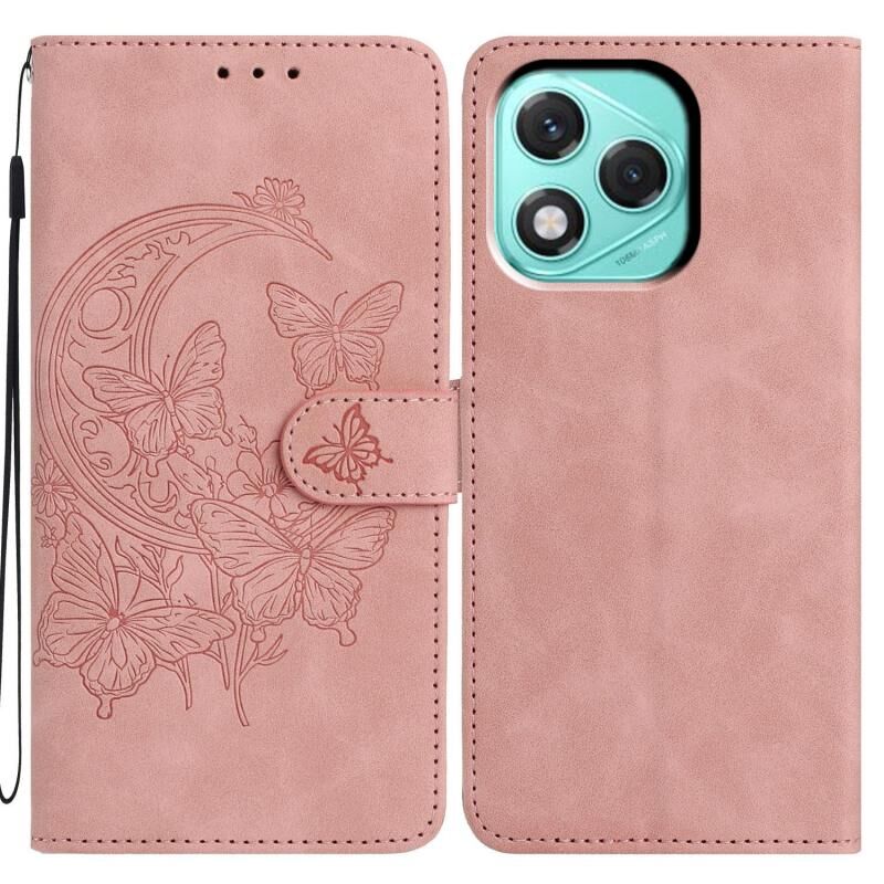 Θήκη τηλεφώνου από δέρμα με ανάγλυφο σχέδιο χορού πεταλούδας στο φως του φεγγαριού για Honor 400 Lite Global (Μωβ)