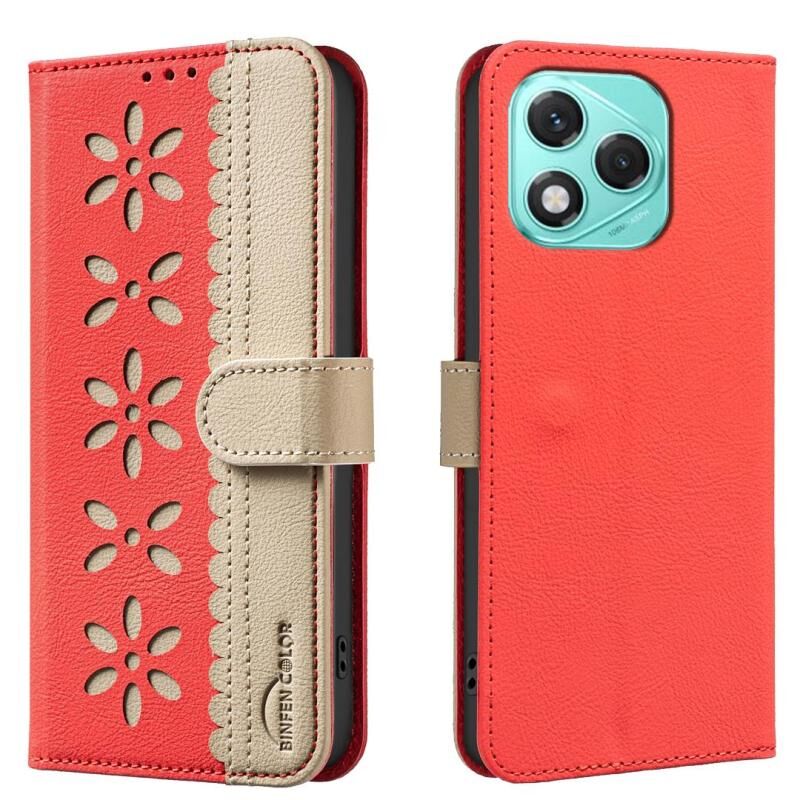 Θήκη τηλεφώνου από δέρμα RFID με σχέδιο κοίλου λουλουδιού και χρωματική ένωση για Honor 400 Lite Global (Κόκκινο)