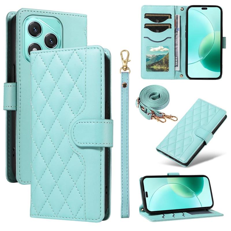 Θήκη τηλεφώνου Honor 400 Lite Global με τρεις υποδοχές καρτών, σχέδιο διαμαντένιου πλέγματος και δέρμα, με μακρύ/σύντομο λουρί (Κόκκινο)