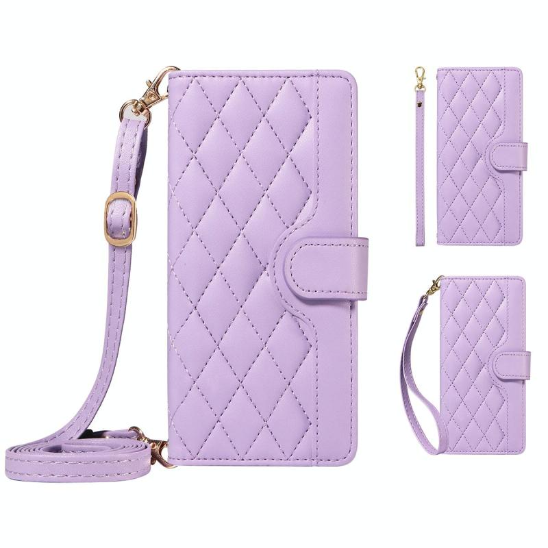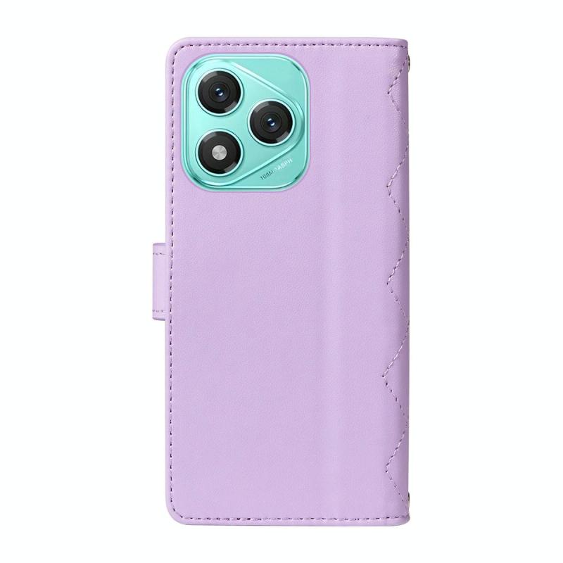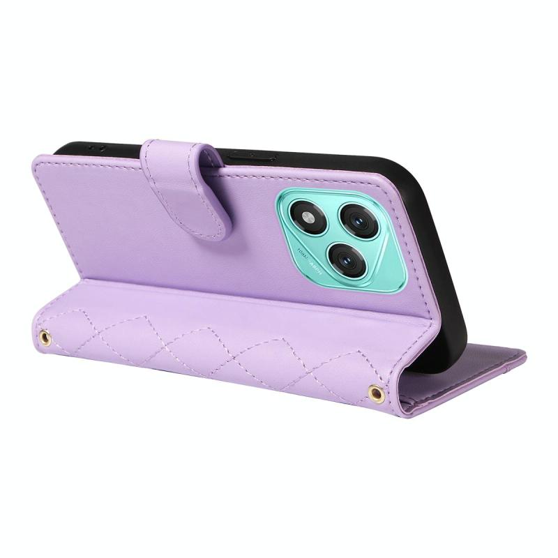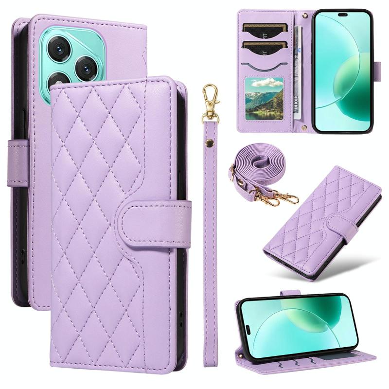 Θήκη τηλεφώνου Honor 400 Lite Global με τρεις υποδοχές καρτών, σχέδιο διαμαντένιου πλέγματος και δέρμα, με μακρύ/σύντομο λουρί (Κόκκινο)