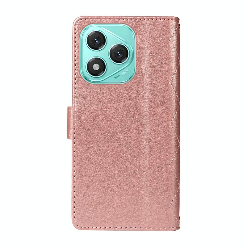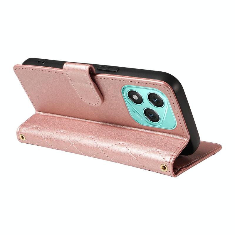 Θήκη τηλεφώνου Honor 400 Lite Global με τρεις υποδοχές καρτών, σχέδιο διαμαντένιου πλέγματος και δέρμα, με μακρύ/σύντομο λουρί (Κόκκινο)