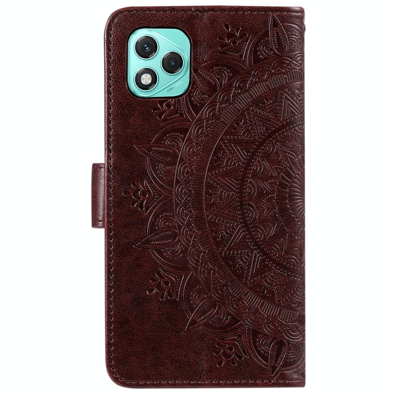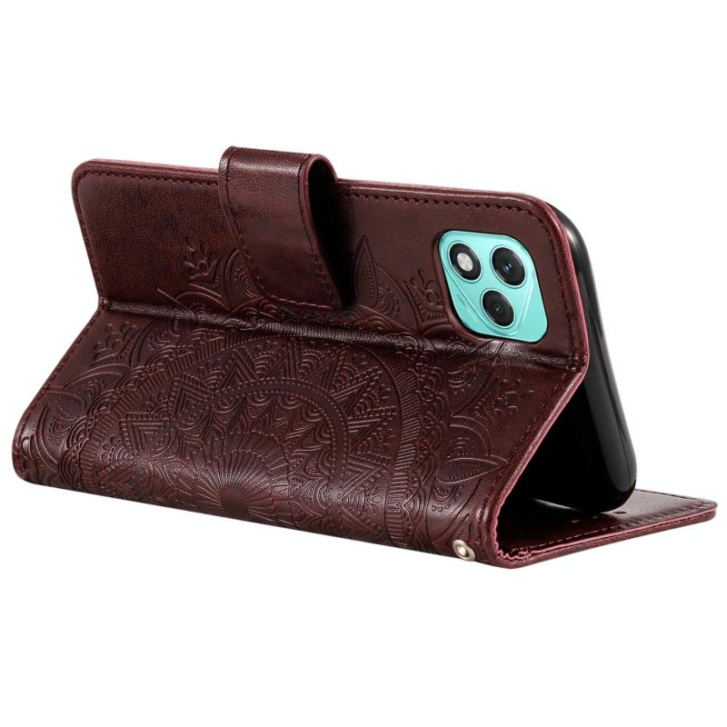 For Honor 400 Lite Global Totem Flower Embossed Leather Phone Case with Lanyard(Brown)