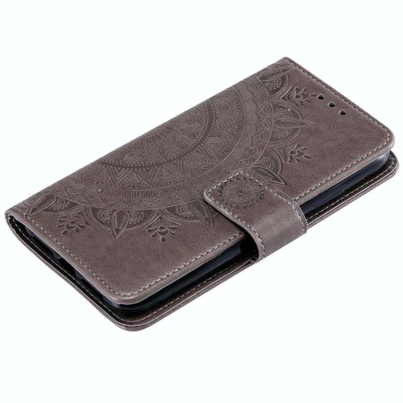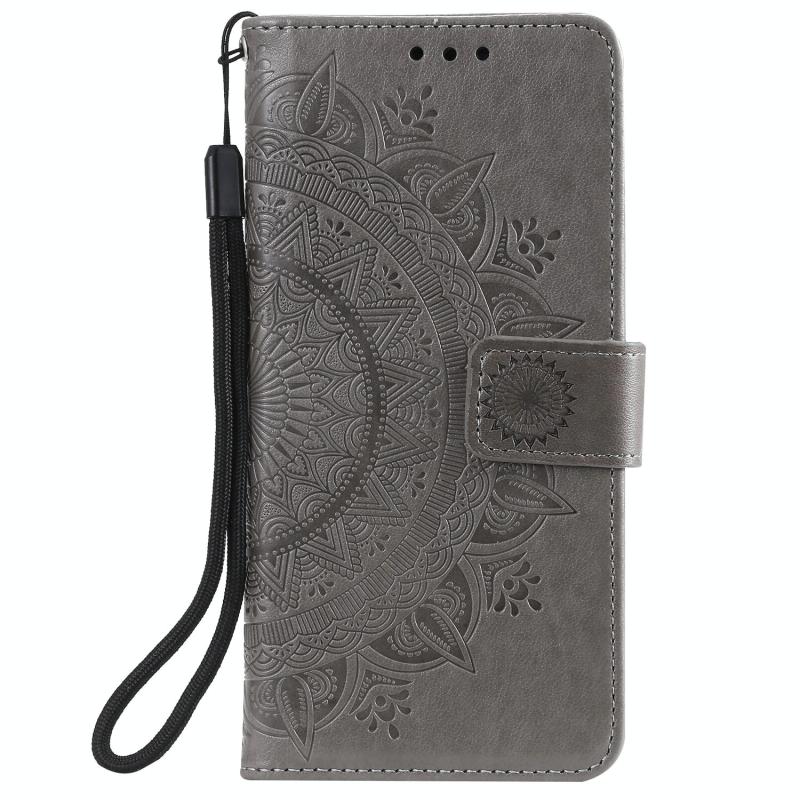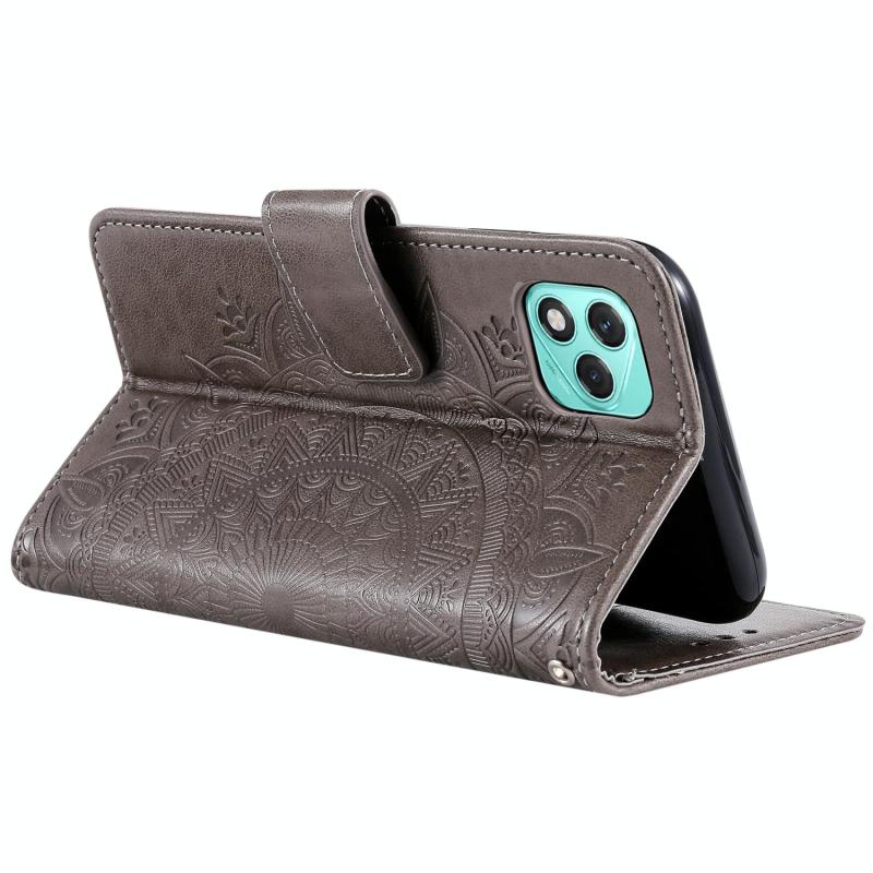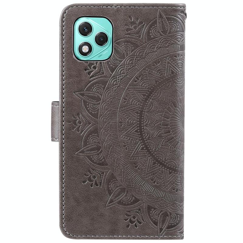 For Honor 400 Lite Global Totem Flower Embossed Leather Phone Case with Lanyard(Grey)