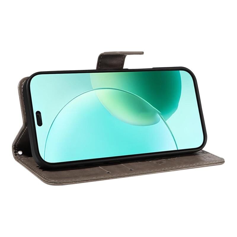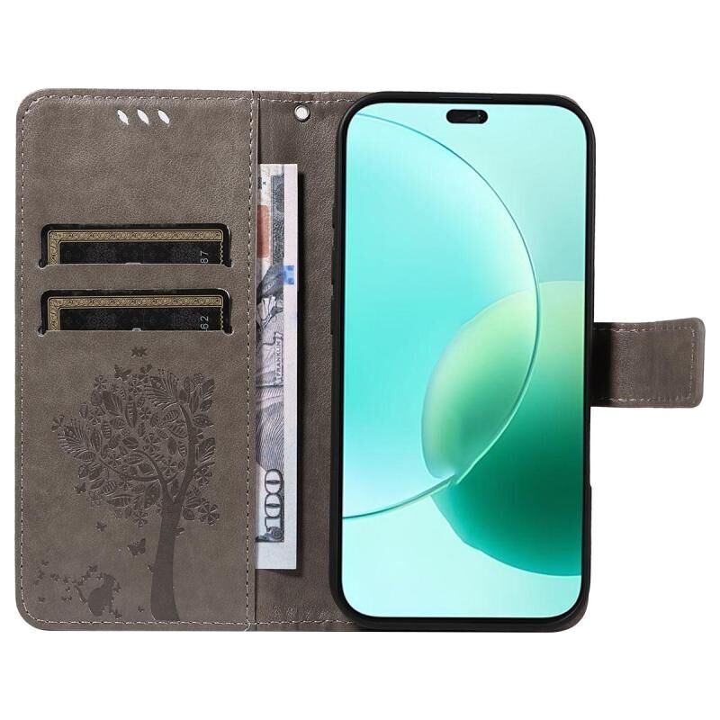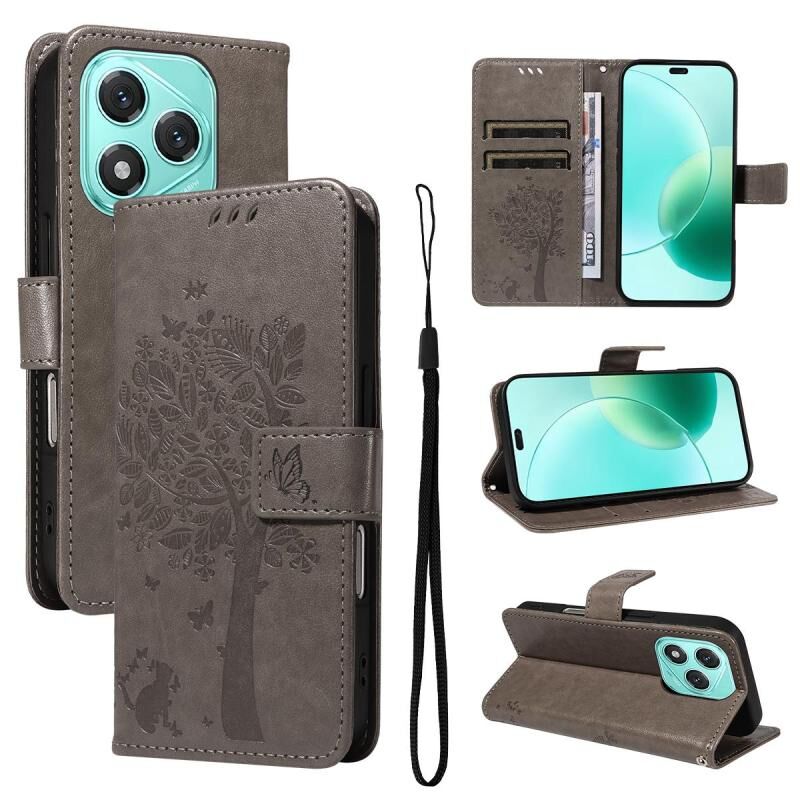 Θήκη τηλεφώνου από δέρμα με σχέδιο ανάγλυφου δέντρου & γάτας για Honor 400 Lite Global (Γκρι)