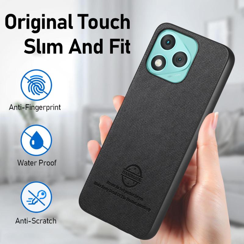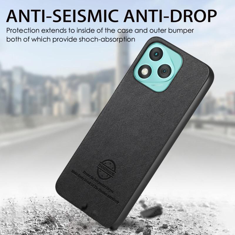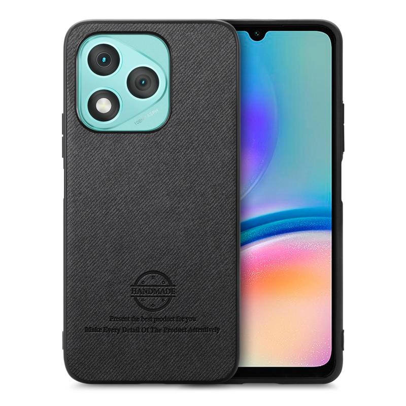 For Honor 400 Lite Global Twill Fabric Leather Skin Back Phone Case(Black)