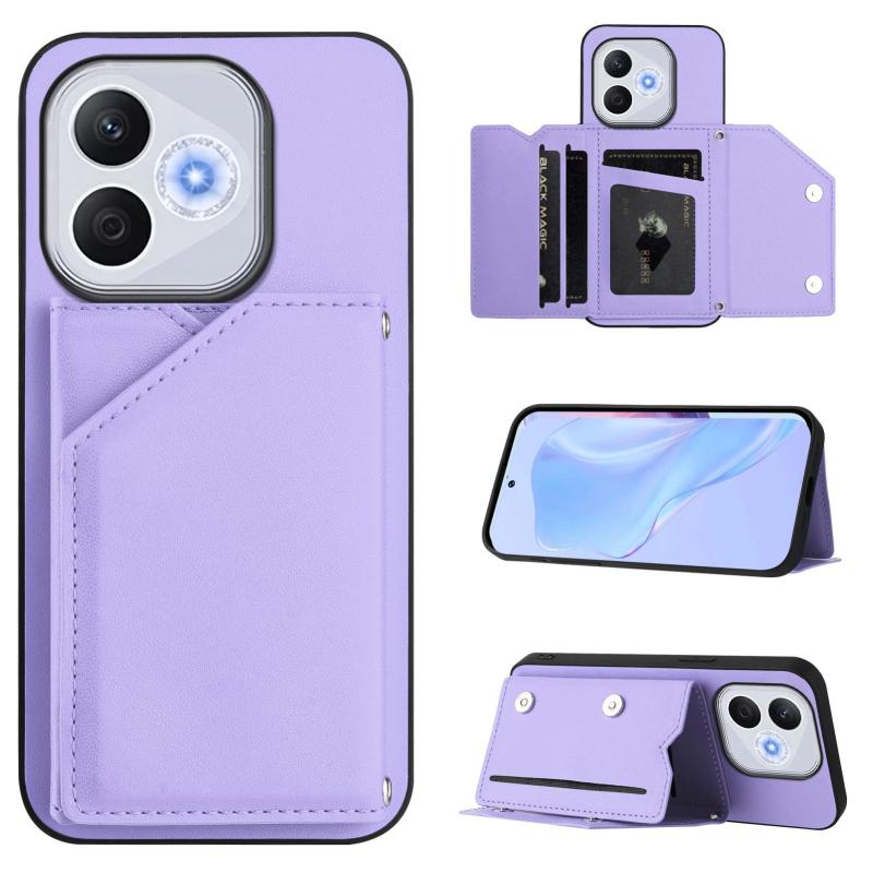 For Honor 400 Lite Global / X70i Skin Feel Four Card Slots Phone Case with Wrist Strap(Purple)