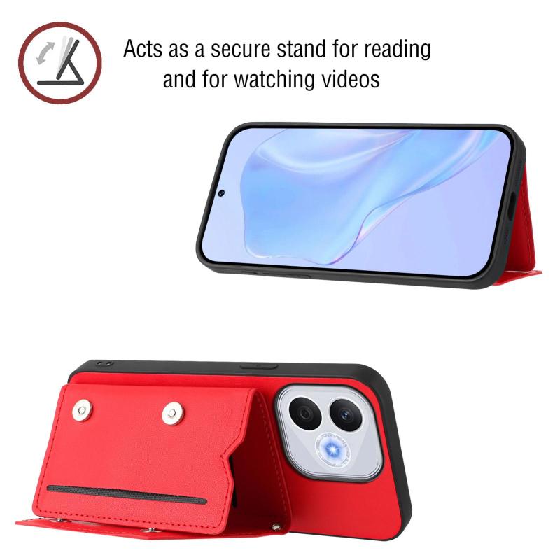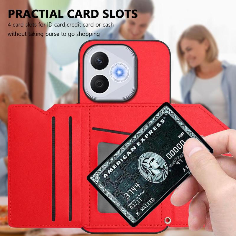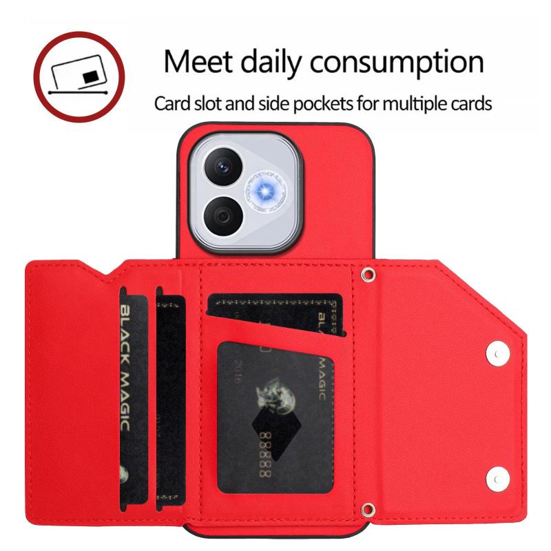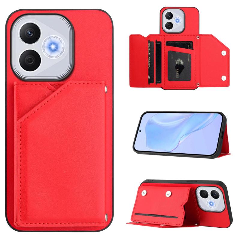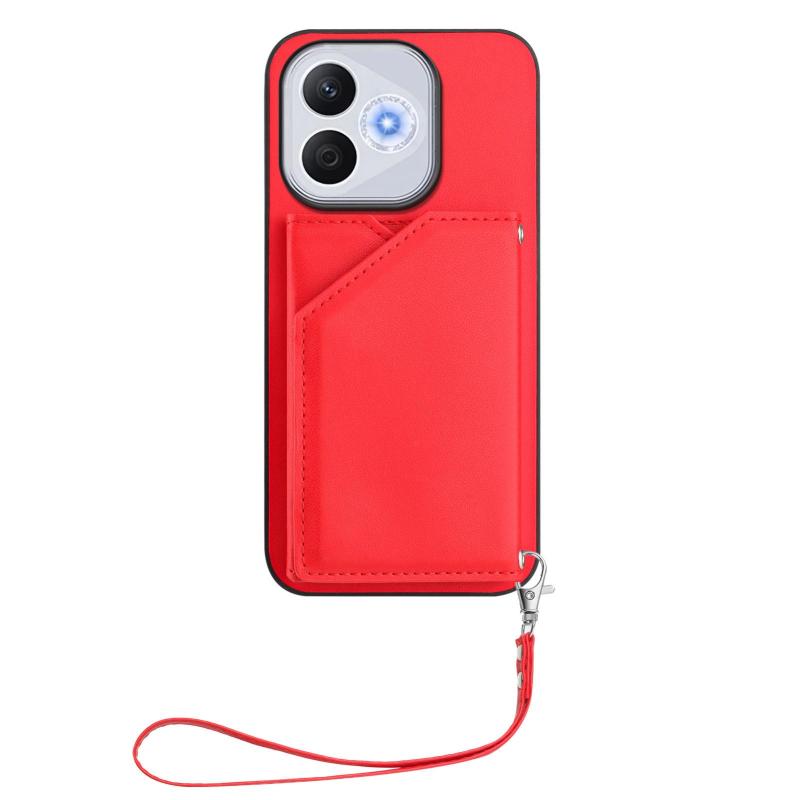 For Honor 400 Lite Global / X70i Skin Feel Four Card Slots Phone Case with Wrist Strap(Red)