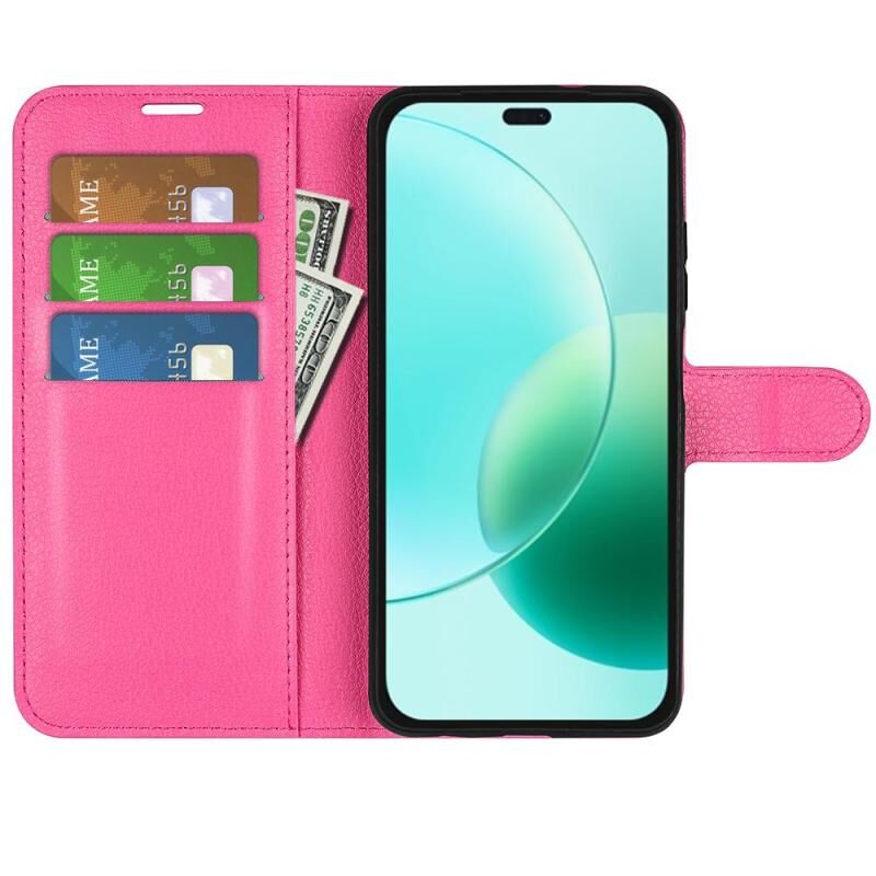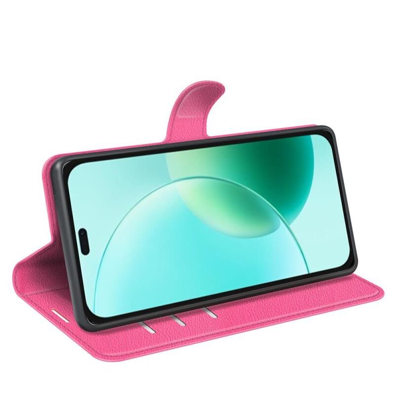 Θήκη τηλεφώνου από δέρμα με οριζόντιο άνοιγμα και υφή λυτσί για Honor 400 Lite με βάση στήριξης (Μαύρο)