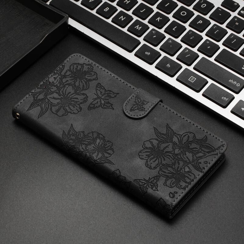 Θήκη τηλεφώνου Honor 400 Pro Global 160.8mm με ανάγλυφο PU υλικό, αίσθηση δέρματος πεταλούδας ανθισμένης κερασιάς (Μωβ)