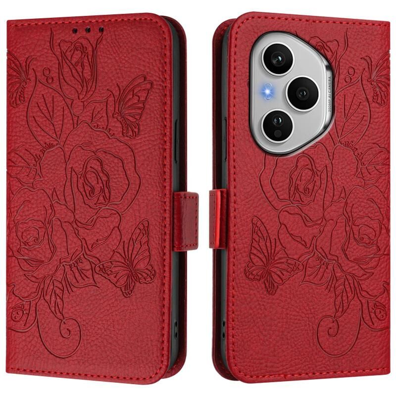 Θήκη τηλεφώνου από δέρμα με ανάγλυφο σχέδιο τριαντάφυλλου, RFID και προστασία από κλοπή για Honor 400 Pro Global 160.8mm (Κόκκινο)