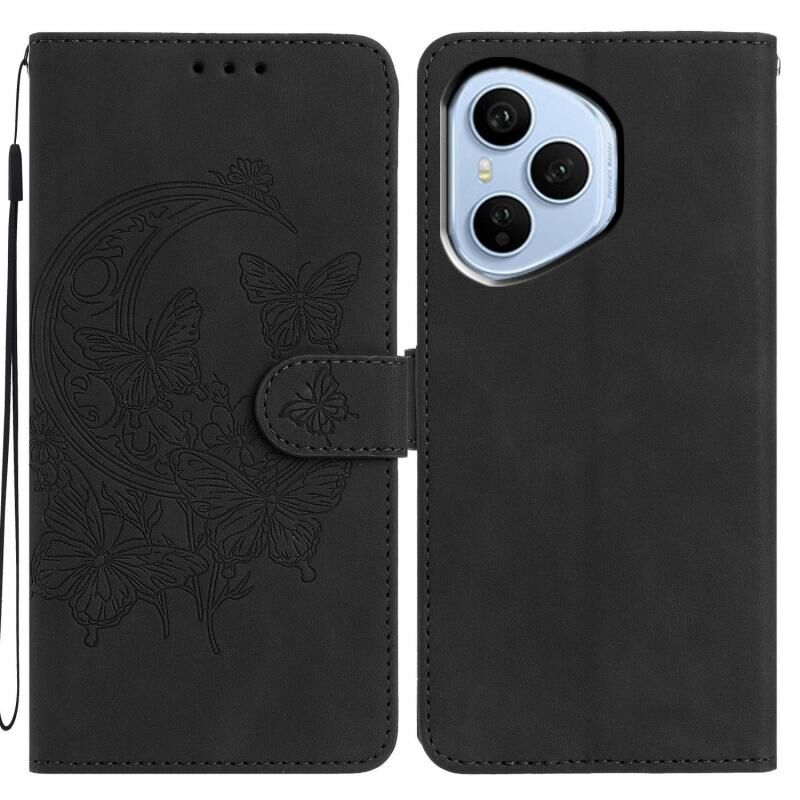 For Honor 400 Pro Global 160.8mm Moonlit Butterfly Dance Pattern Embossed Leather Phone Case(Black)