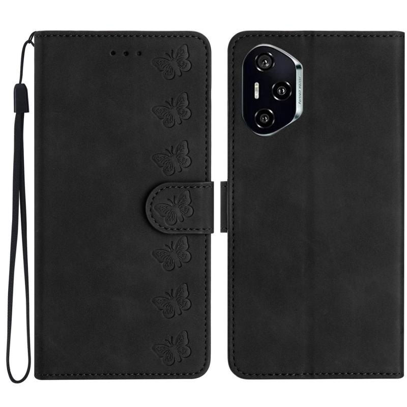 Θήκη τηλεφώνου Honor 400 Pro Global 160.8mm Seven Butterflies Embossed Leather (Μαύρο)