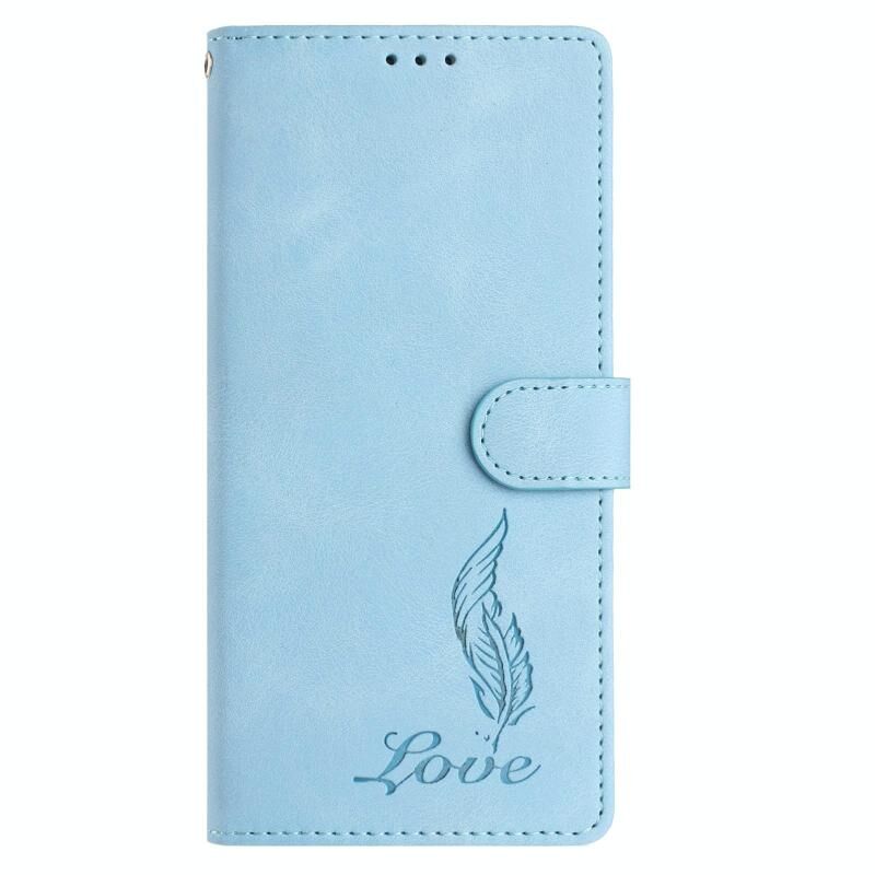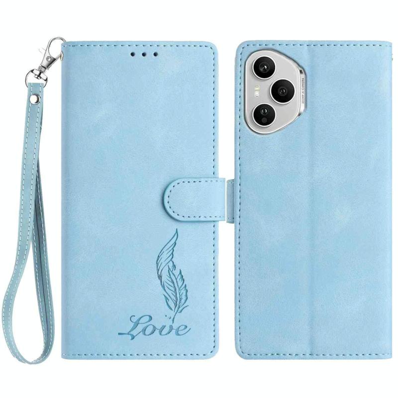 For Honor 400 Pro Global 160.8mm Skin Feel Embossed Feather Leather Phone Case(Light Blue)