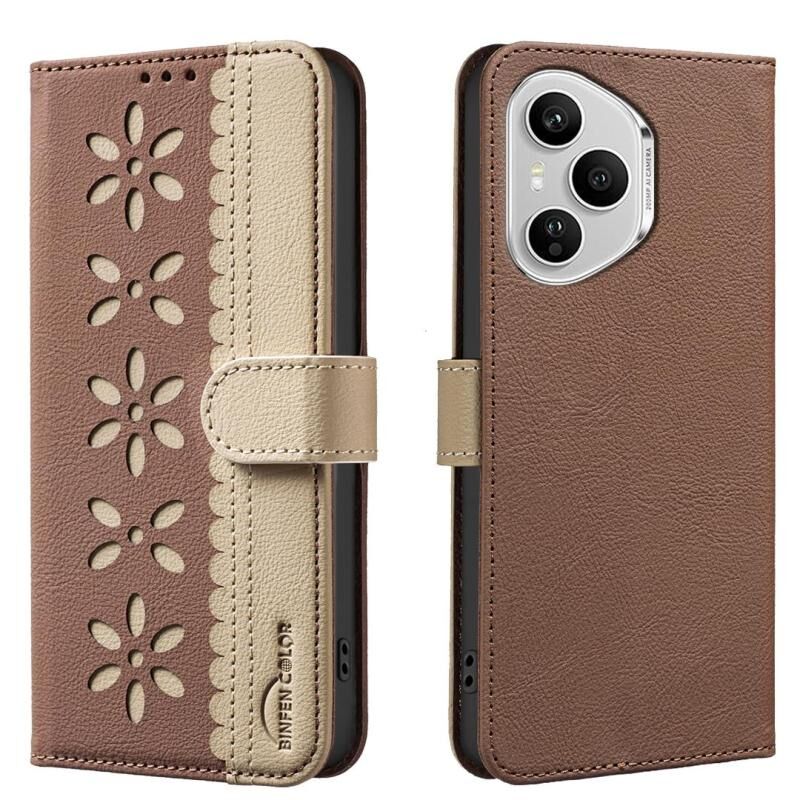 Θήκη τηλεφώνου από δέρμα RFID με κοίλο σχέδιο λουλουδιού, ραμμένη σε χρώμα (Σκούρο Μπλε) για Honor 400 Pro Global 160.8mm.