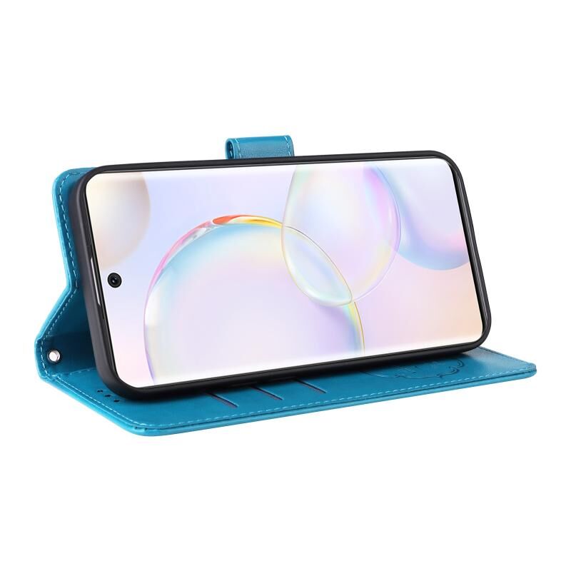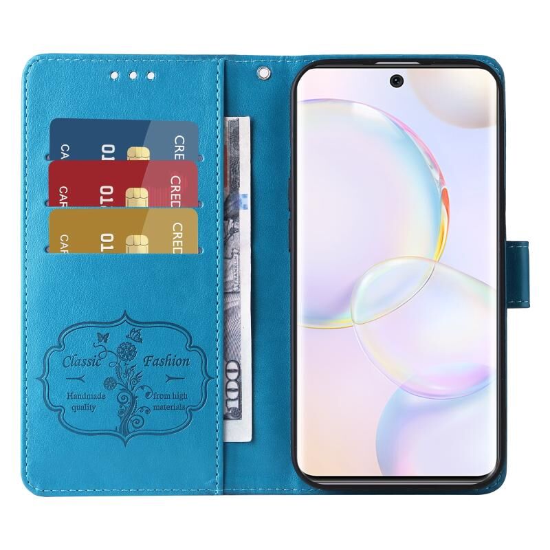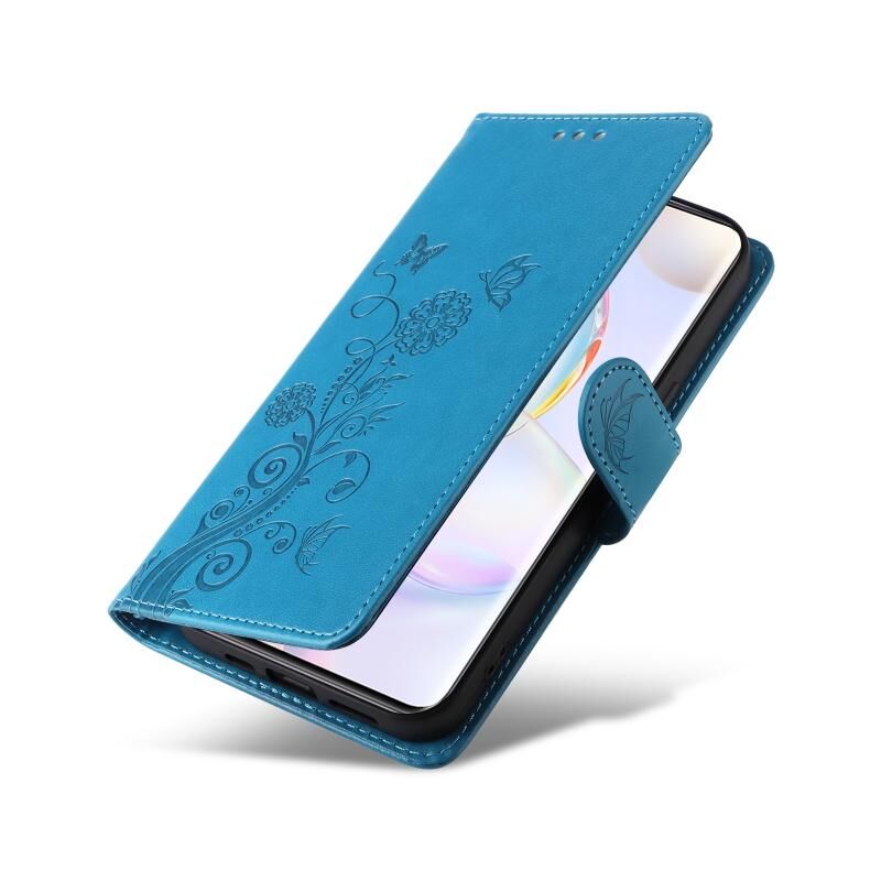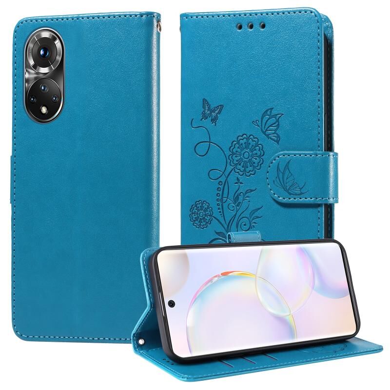 Θήκη τηλεφώνου από δέρμα με ανάγλυφα λουλούδια και πεταλούδες για Honor 50 5G / Huawei nova 9 (Μωβ)