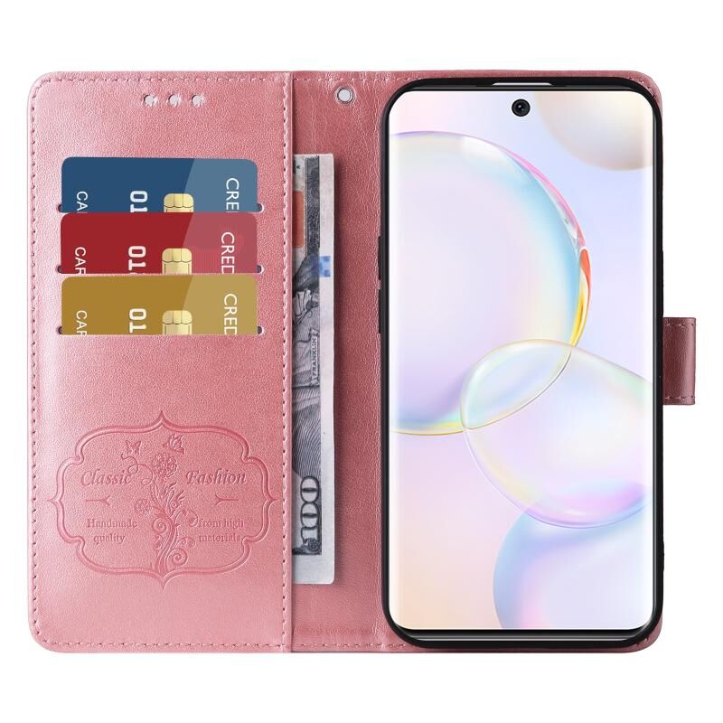Θήκη τηλεφώνου από δέρμα με ανάγλυφα λουλούδια και πεταλούδες για Honor 50 5G / Huawei nova 9 (Μωβ)