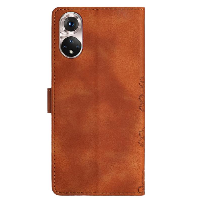 For Honor 50 Cherry Blossom Butterfly Skin Feel Embossed PU Phone Case(Brown)