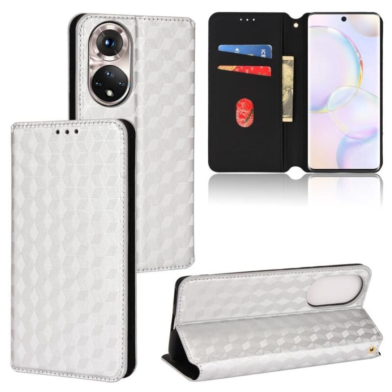 Θήκη τηλεφώνου Honor 50 Cubic Grid Texture Flip από δέρμα (Κόκκινο)