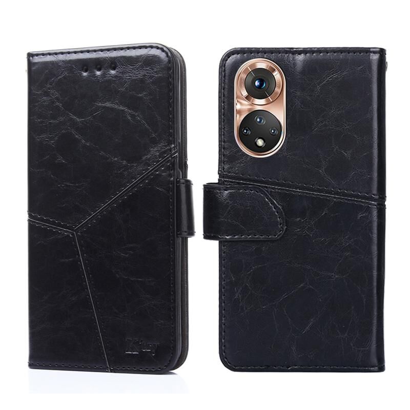 Για Honor 50 γεωμετρική ραφή οριζόντια Flip υπόθεση τηλεφώνου δέρμα (μαύρο)