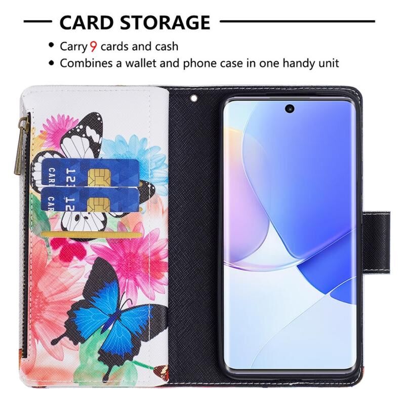 Θήκη τηλεφώνου από δέρμα με φερμουάρ και πολύχρωμο σχέδιο για Honor 50 / Huawei nova 9 (Δύο Πεταλούδες)