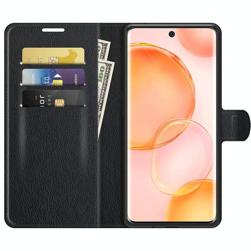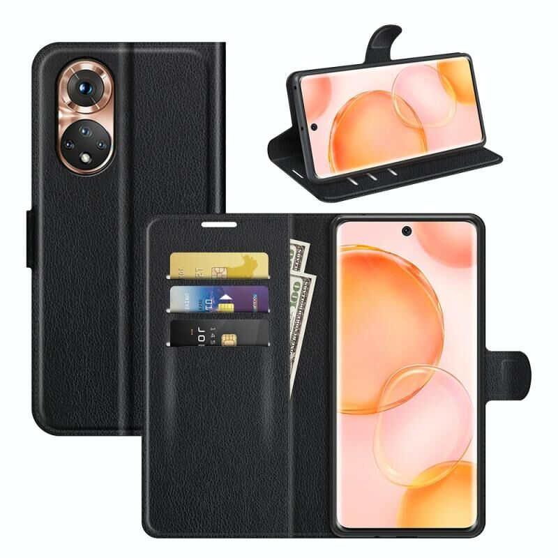 Για Honor 50 Litchi Υφή Οριζόντια Flip Προστατευτική θήκη με κάτοχο & υποδοχές για κάρτες & πορτοφόλι (Μαύρο)