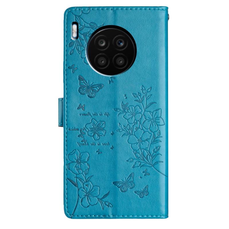 For Honor 50 Lite Butterflies And Flowers Leather Phone Case(Blue)