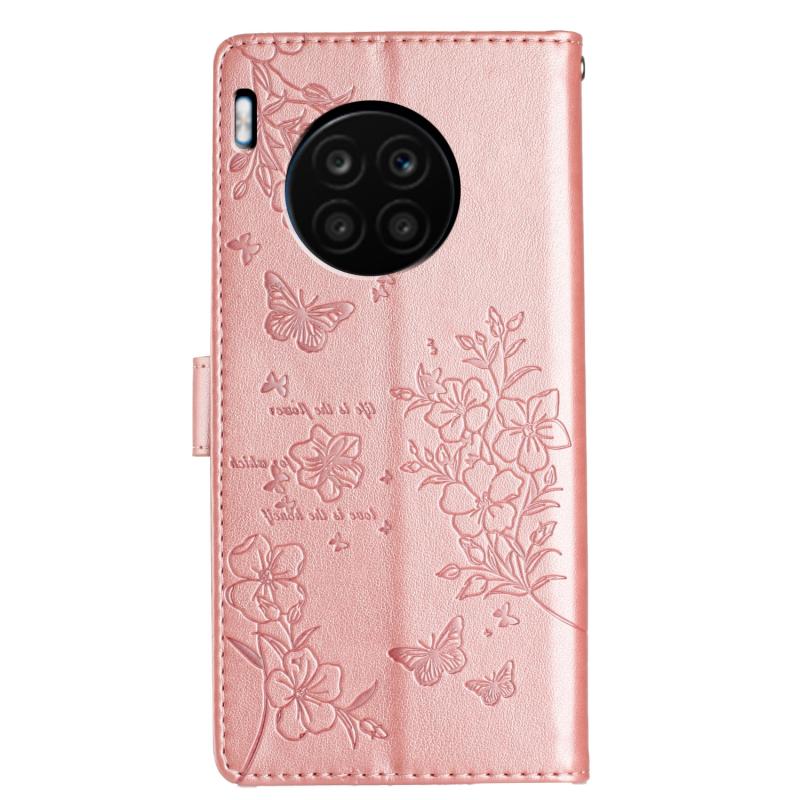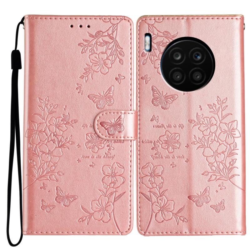 For Honor 50 Lite Butterflies And Flowers Leather Phone Case(Rose Gold)