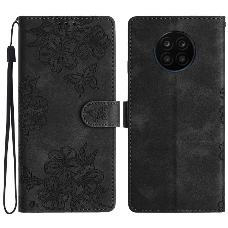 For Honor 50 Lite Cherry Blossom Butterfly Skin Feel Embossed PU Phone Case(Black)