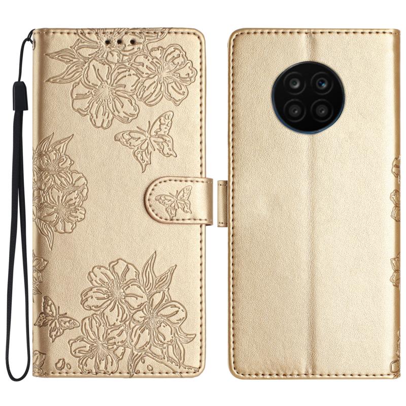 For Honor 50 Lite Cherry Blossom Butterfly Skin Feel Embossed PU Phone Case(Gold)