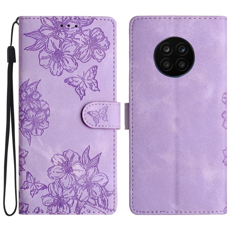 For Honor 50 Lite Cherry Blossom Butterfly Skin Feel Embossed PU Phone Case(Purple)