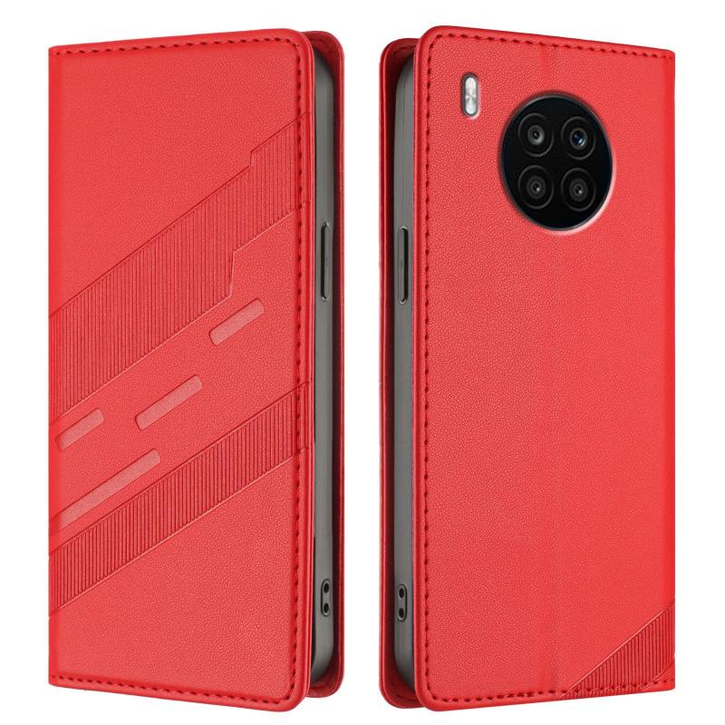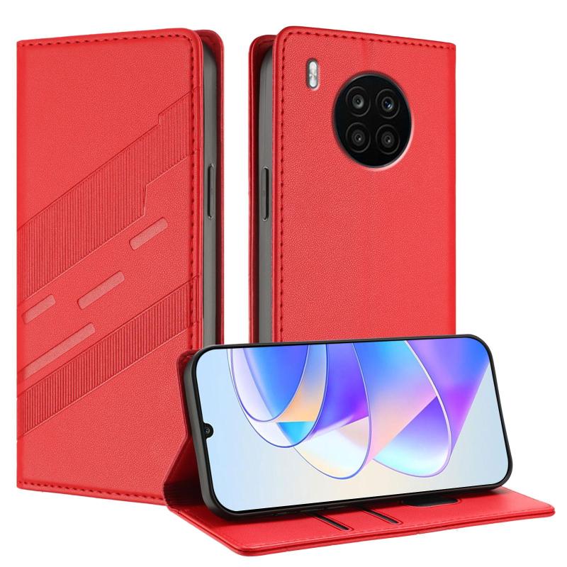 Θήκη τηλεφώνου από δέρμα retro, πολυλειτουργικό πορτοφόλι με ανάγλυφο σχέδιο για Honor 50 Lite / Huawei nova 8i (Μαύρο)
