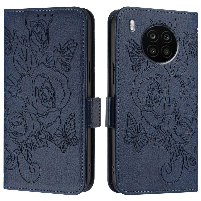 For Honor 50 Lite / Huawei nova 8i Embossed Rose RFID Anti-theft Leather Phone Case(Dark Blue)