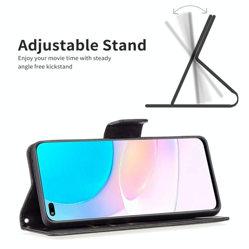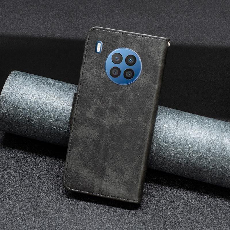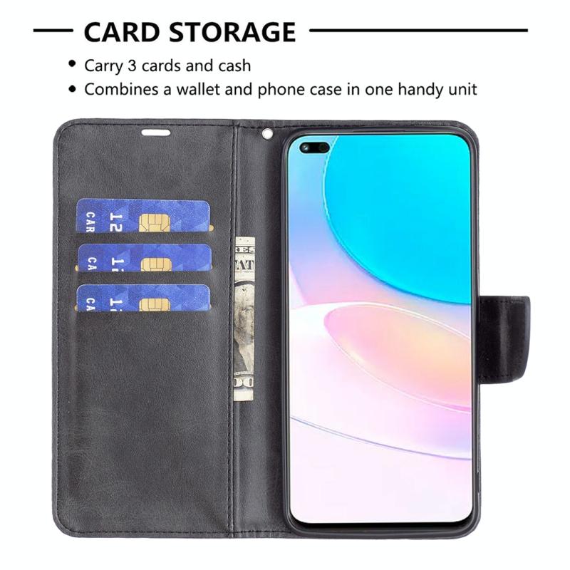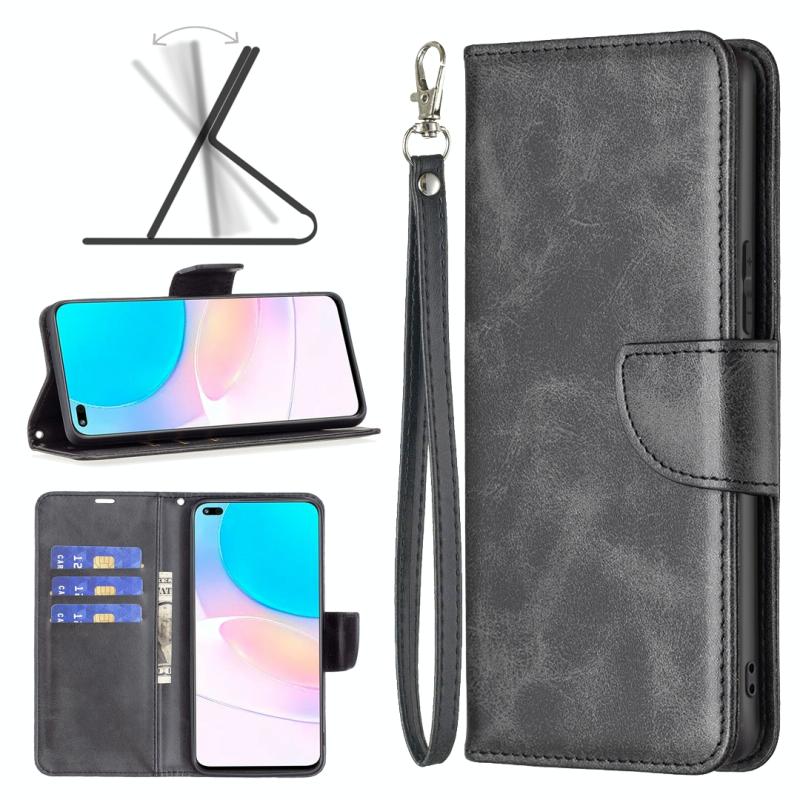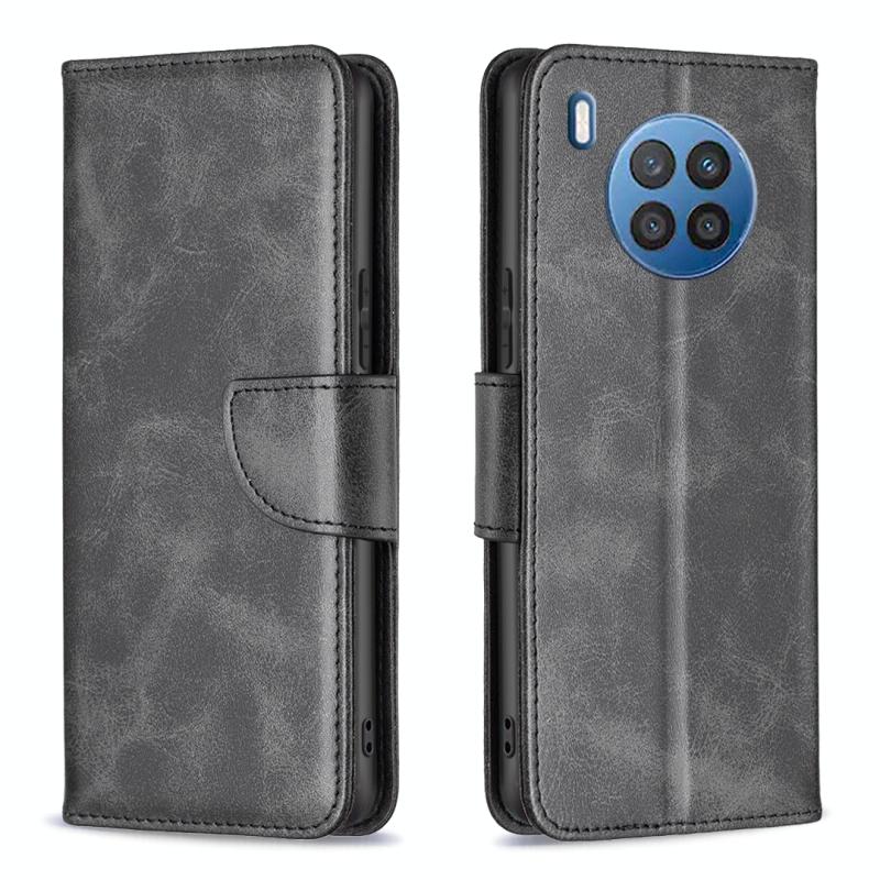 Θήκη τηλεφώνου από γνήσιο δέρμα με καθαρό χρώμα και υφή δέρματος αρνιού για Honor 50 Lite / Huawei nova 8i (Μαύρο)