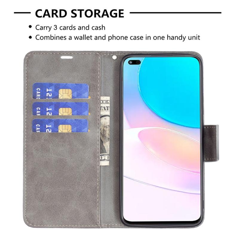 Θήκη τηλεφώνου από γνήσιο δέρμα με καθαρό χρώμα και υφή δέρματος αρνιού για Honor 50 Lite / Huawei nova 8i (Μαύρο)