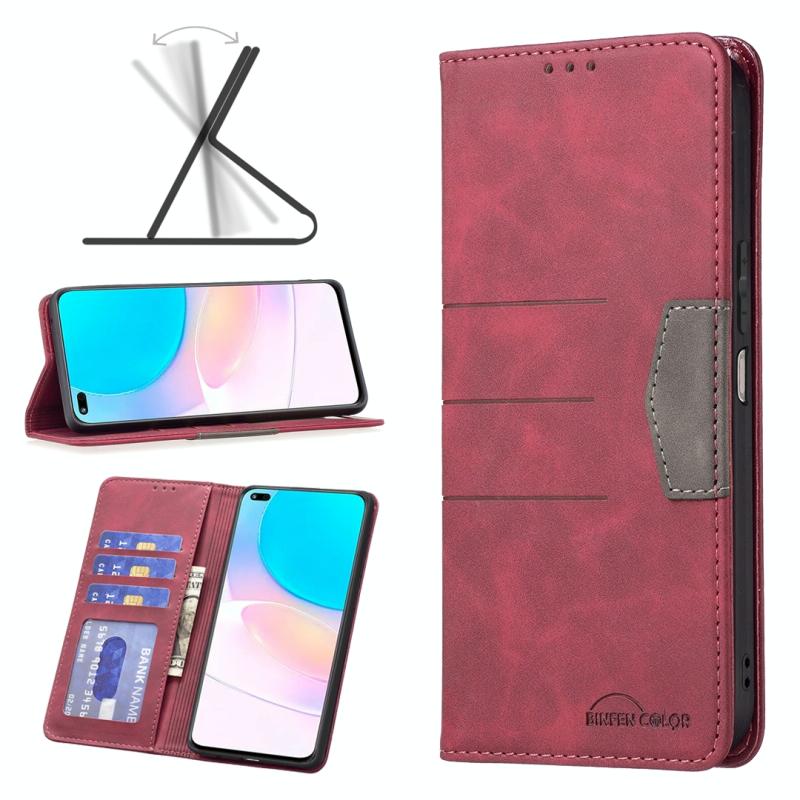 For Honor 50 Lite / Huawei nova 8i Magnetic Splicing Leather Phone Case(Red)