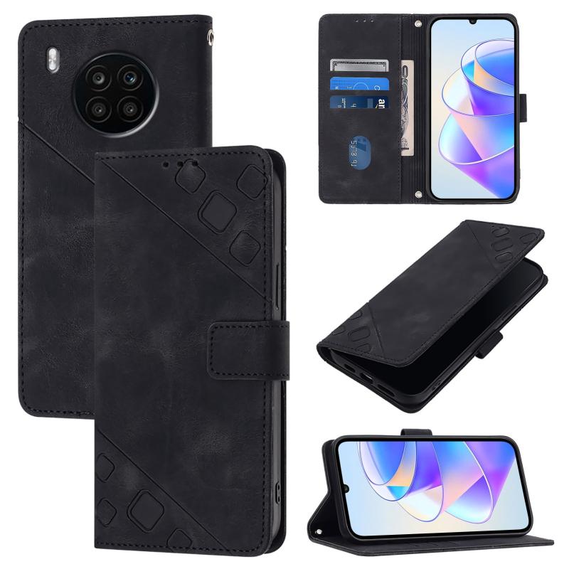 For Honor 50 Lite Skin-feel Embossed Leather Phone Case(Black)