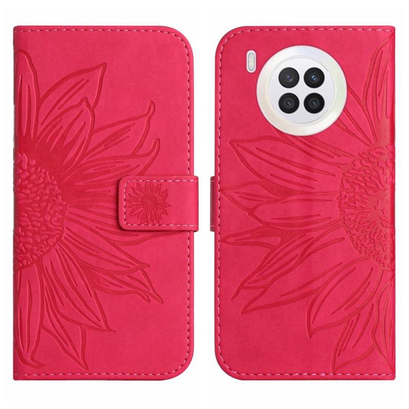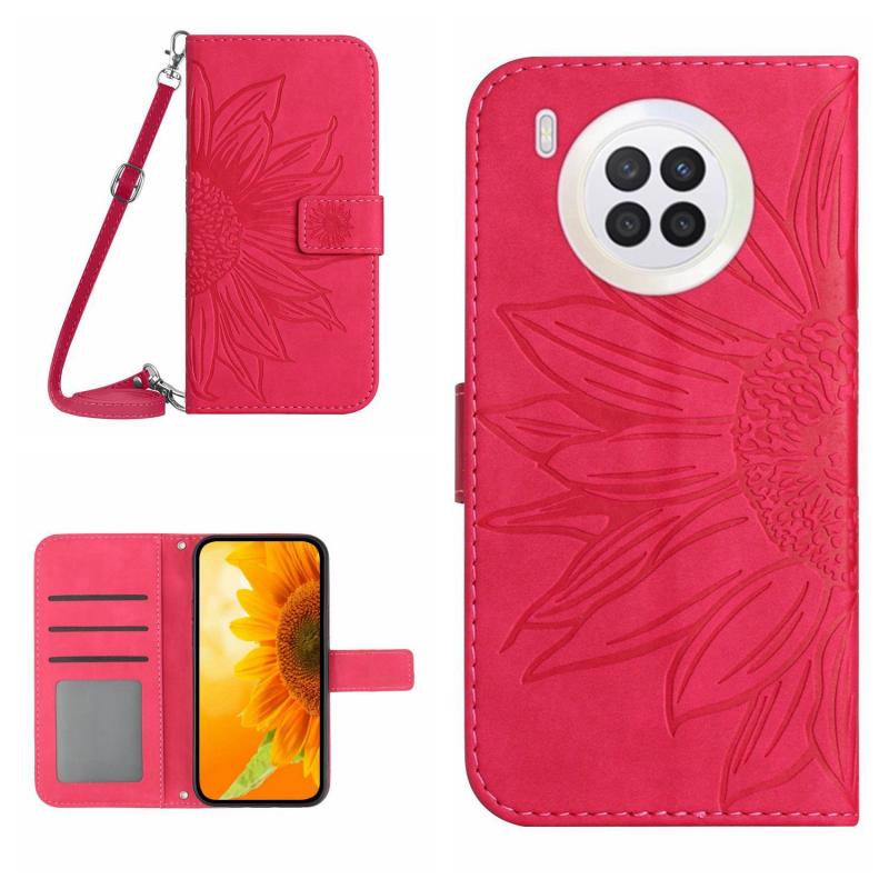 Θήκη τηλεφώνου από δέρμα με σχέδιο ηλίανθου και λουρί για Honor 50 Lite (Μωβ σκούρο)