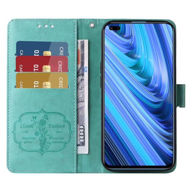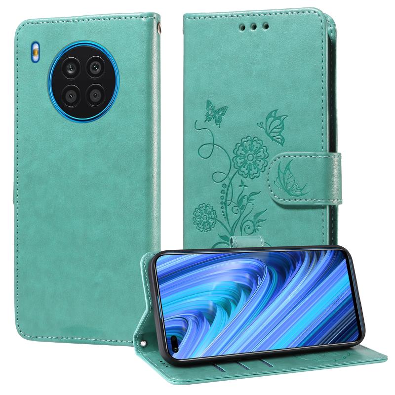 For Honor 50 Lite / X20 / Huawei nova 8i Embossed Butterfly Flowers Leather Phone Case(Green)