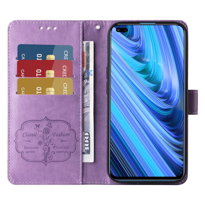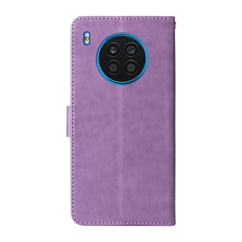 For Honor 50 Lite / X20 / Huawei nova 8i Embossed Butterfly Flowers Leather Phone Case(Purple)