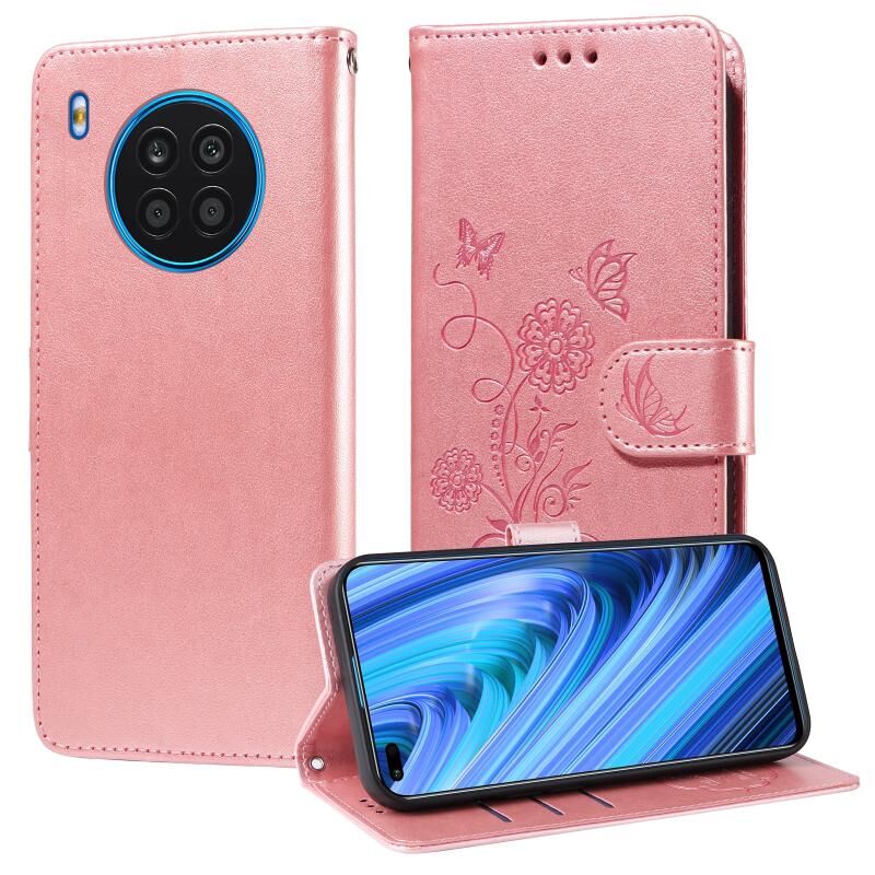 Θήκη τηλεφώνου από δέρμα με ανάγλυφα λουλούδια και πεταλούδες για Honor 50 Lite / X20 / Huawei nova 8i (Μωβ)