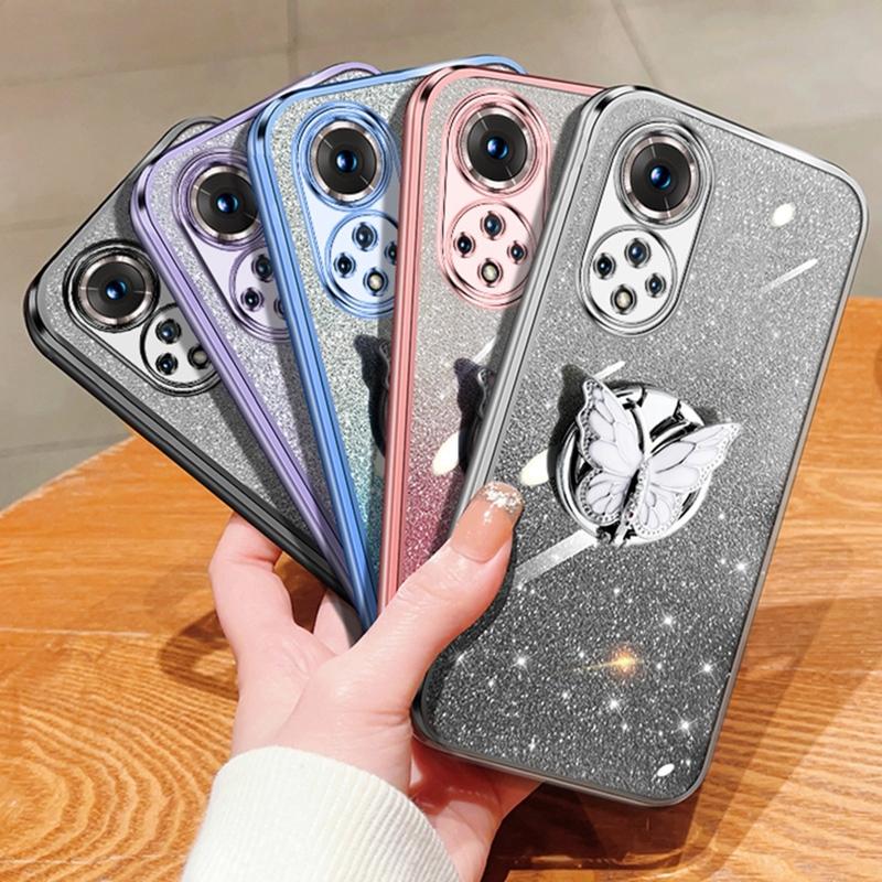 For Honor 50 Plated Gradient Glitter Butterfly Holder TPU Phone Case(Purple)