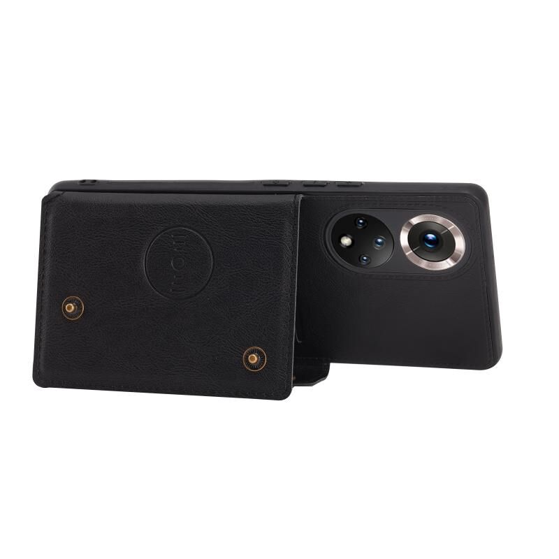 Για Honor 50 Pro Διπλή πόρπη PU + TPU Shockproof μαγνητική θήκη με υποδοχές καρτών & κάτοχος (Μαύρο)